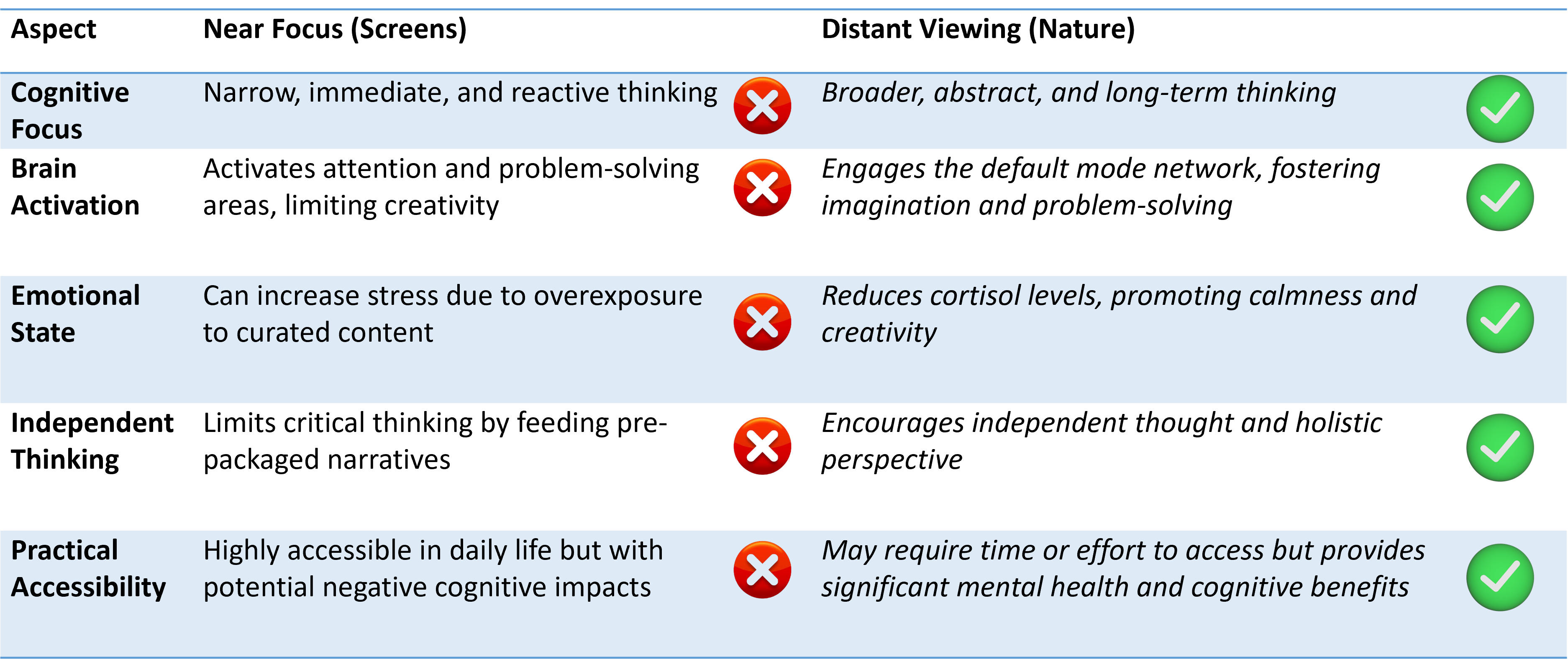 As screens become an inescapable part of our daily lives, finding balance is crucial. Understanding how near-sighted focus impacts our thinking allows us to take deliberate steps to counter-balance its effects. By integrating distant viewing and journaling into your routine, you can cultivate a mindset that’s more creative, reflective, and aligned with your long-term aspirations.