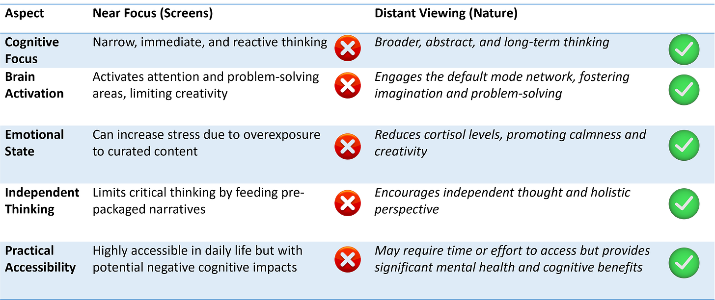 Just as near-focused tasks narrow our perspective, viewing distant scenes—like a scenic hike or a sprawling skyline—can enhance cognitive function. Research in neuroscience and psychology shows that distant viewing encourages a state known as “mental decoupling,” where the mind shifts from immediate concerns to broader, abstract considerations.